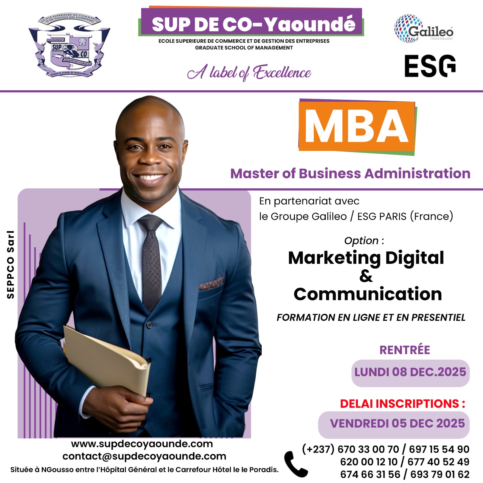 Décrochez un Master of Business Administration (MBA) option Marketing digital et communication à SUP DE CO Yaoundé en partenariat avec ESG Paris /Groupe Galileo France .